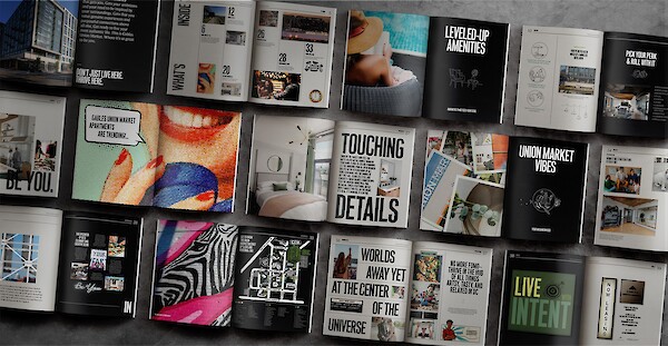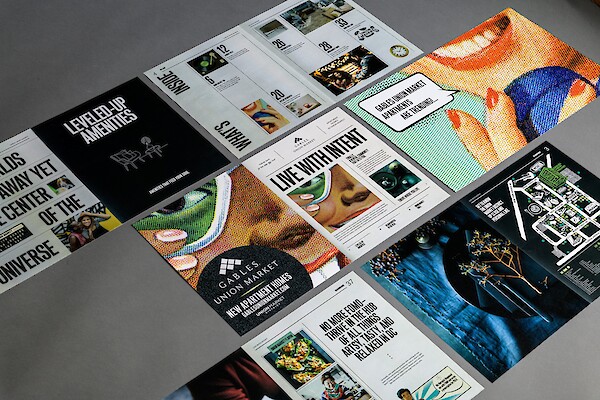 (About) Gables Union Market sits at the heart of DC’s vibrant Union Market District—a buzzing hub of culture and cuisine. Noon developed a bold, expressive brand campaign that channels the energy of creative urban living in one of the city’s most dynamic neighborhoods. Positioned as a launchpad for individuality, the campaign centers around the theme Live with Intent, brought to life through gritty halftone imagery featured on murals and vintage-style signage throughout the building—echoing the area's raw, creative spirit. Our team crafted evocative messaging, a striking visual language, and editorial storytelling showcased across the brochure, immersive website, and building signage—creating a signature brand moment full of youthful energy and a clear call to action. Gables Union Market is more than a place to live—it’s a movement toward purposeful, inspired living in the heart of DC’s creative core.