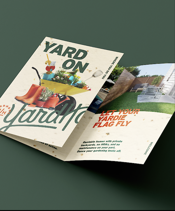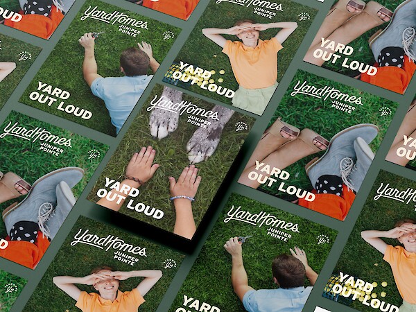 (About) YardHomes is a vibrant collection of luxury rental homes with private backyards across Texas. Noon created a bold brand and campaign centered around the idea of “Yard Out Loud.” We developed energetic messaging and visual storytelling that celebrated private outdoor space, smart-home convenience, and the unmatched lifestyle of these no-compromise neighborhoods. Our team led art direction and design across all collateral, infusing every element with color, community, and personality. From backyard yoga to dog parties at the bark park, the campaign captured the playful, elevated spirit of life at YardHomes.